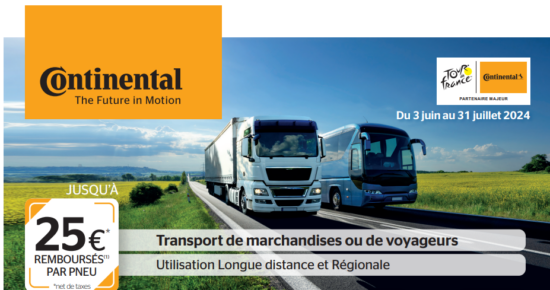 Du 2 juin au 31 juillet 2025, pour l’achat de 2 pneus poids lourds Continental, profitez de 25€ HT remboursés […]